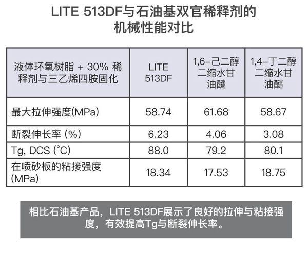 該材料是石油基雙官能稀釋劑(例如1,6己二醇二縮水甘油醚和1,4丁二醇二縮水縮水甘油醚)的極好替代品。