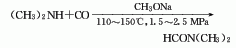2、二甲胺-一氧化碳法:由二甲胺與一氧化碳在甲醇鈉作用下,直接反應而得。反應條件是1.5-2.5mpa和110-150℃。粗品經精餾制得成品。