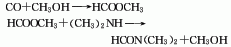 3、由一氧化碳和甲醇在高壓和80-100℃溫度下經羰基合成得甲酸甲酯,然后再與二甲胺反應生成二甲基甲酰胺,精餾后得到成品。